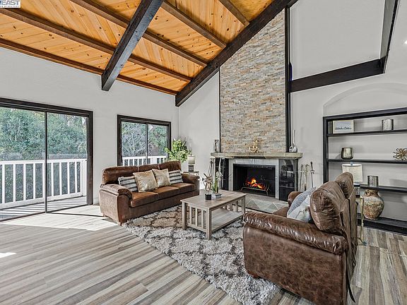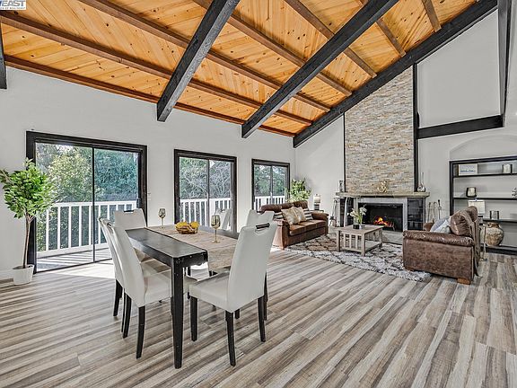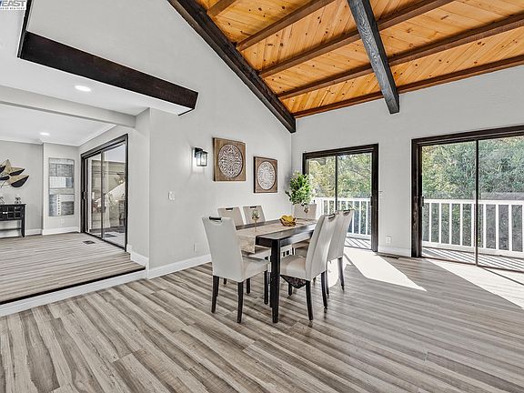 Custom and Unique Lovely 5 Bedroom, 3-1/2 Bath Splendid Beauty in Hayward, is Waiting For You! Hidden away in the lovely Hayward hills, is a beautiful property surrounded by nature. With a walking path to the nearby creek and trees providing privacy and plentiful shade, you’ll be amazed at all there is to offer on this fabulous sprawling property. This gorgeous 5 bedroom, 3 ½ bath split-level is an ideal home. Entering this property on the second level, you are welcomed by an attractive fountain and statuary with landscaping featuring a variety of splendid fruit and rich, green trees. The retro front door welcomes you into a stylish foyer with a distinctive flooring design. Stunning water proof flooring throughout the home takes you on a journey inviting your senses in. Three spacious bedrooms upstairs with 2.5 updated baths with light beaming in and views of the lush rear-yard landscape will take your breath away. The dream kitchen boasts all new stainless appliances with gas stove, beautiful cabinetry, walk-in pantry and an island for entertaining and fun conversations. An adjoining dining area provides cozy appeal. Enjoy convenience of downtown Hayward.