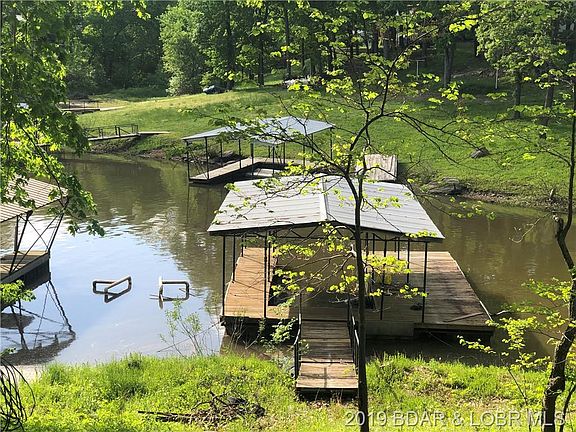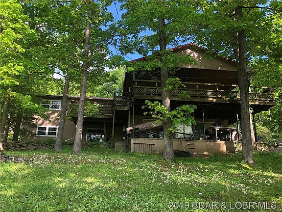 Large 4 bedroom, 2 bath waterfront home with covered dock on Lake of the Ozarks. Home has Central Heat & Air, large covered deck overlooking the Lake. Basement is partially finished, part workshop. Walkout to Lake. Hardwood floors, vaulted wood ceiling, huge game room. Over 26000 square feet finished on the Lake. Must See!!
