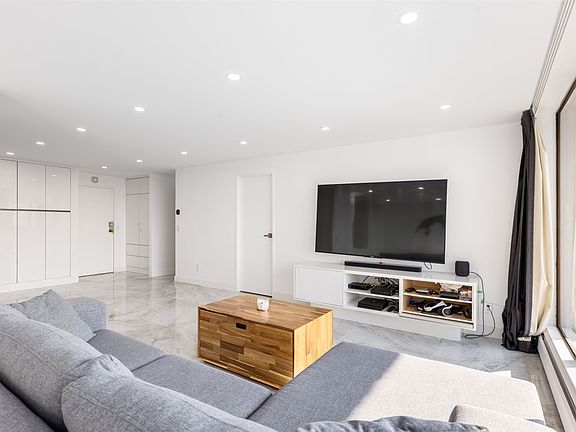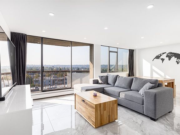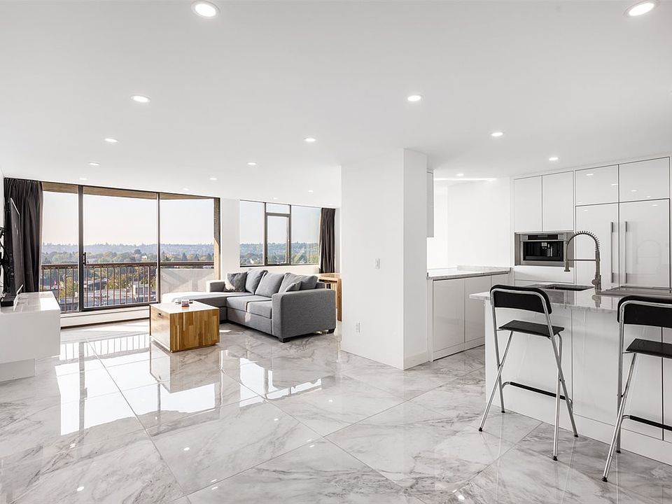 Welcome to this fully renovated oversized 1 bed unit (easily converted to 2 Bed) north of 4th in Kitsilano! From the marble tile flooring throughout the living/dining/kitchen to the woven bathroom floor tile, stone countertops & highest end s/s appliances + built-ins, this renovation has it all. The kitchen has been opened up for ideal entertaining, now offering an abundance of deep storage, bar seating & prep counter + built in cappuccino machine. Integrated In-suite washer/dryer & full digital home features + unobstructed Southern views over kits make this home extra bright! Your ensuite offers endless stonework & leads through the reconfigured walk-in closet into the very generous bedroom with king size bed + side tables with room to spare and even offers direct patio access!
