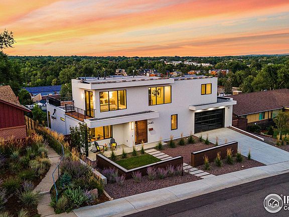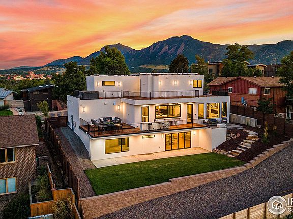 Perched high on one of Boulder's premier streets, this modern masterpiece highlights some of Boulder's most iconic views from every room of the house. The moment you step inside, you're greeted by expansive views and an open floor plan that seamlessly connects the indoor and outdoor living areas. Main level deck off kitchen and living room offers unobstructed foothill views, outdoor kitchen with eat-at serving window, built-in heaters, and brick patio with fire pit. Striking Chef's kitchen boasts custom cabinetry, built-in pantry wall and top of the line appliances; 48" Wolf range-top, Wolf double oven, 48" Sub-Zero refrigerator, and Miele coffee system. Elegant master suite highlighted by flatiron views, luxury bath with steam shower, private balcony and custom walk-in closet with access to deck. Hot tub on master deck provides 360 degree views of Boulder. White Oak flooring throughout main level and walk-out basement. Main floor features office with attached bath and spacious laundry room with ample built-in storage. Walk-out basement seamlessly transitions to backyard and offers wet bar, family room, gym, dog wash room, and oversized covered patio. Fantastic central Boulder location, just minutes to downtown Boulder.