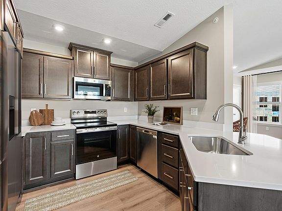 - Features: Breakfast Bar, Wood Cabinets, Solid Surface Counters, Luxury Vinyl Flooring
