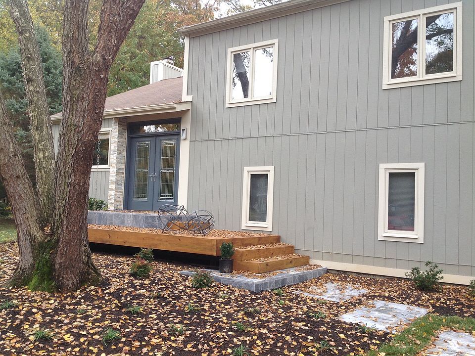 Stunning Single Family sundrenched Contemporary with Vaulted Ceilings, New Rich Hardwood Floors, Upgraded Tile, Custom Paint, Granite Fireplace, Renovated interior in 2015; Renovated front entrance 2016. Kitchen has S/S Appliances, Granite Counters, Breakfast bar has Panoramic Views Back to woods, Huge deck off breaksfast Rm. Close to Reston Town Center