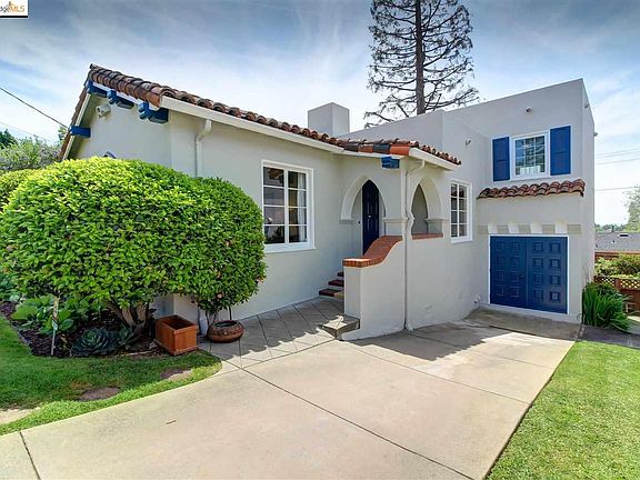 Welcome to this Mediterranean style home with arches, tiled roof and loads of charm! From the lovely living room fireplace to the formal dining room and updated kitchen, you will love the attention to detail. The split level to master bedroom, hall bath and spacious second bedroom has a wonderful Bay view. The kitchen has granite counters, newer cabinets and appliances and a very sweet eating nook overlooking the garden. The split level down leads to the family room with access to the deck and yard, a full bath and a third room perfect for an office, game room or bedroom. There is approximately 700 square feet of dry basement storage/workshop and many upgrades of hidden value to electrical, heating, sewer and seismic systems. The garden is fully planted and blooming!