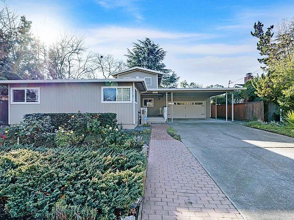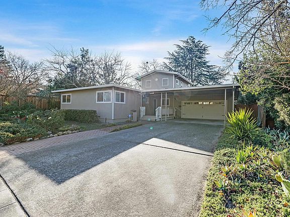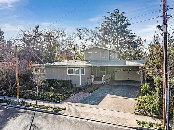 Welcome to this lovely Mid-Century Modern Home, located in one of the most desirable Southside neighborhoods. The home radiates warmth and beauty with gleaming original hardwood floors through the downstairs. Living room features sandstone wood burning fireplace, vaulted ceiling highlighted by original wood beams, wonderful large picture window with view to private backyard. Adjacent to living room is the gracious dining room with large slider bringing in more light. The spacious kitchen is highlighted by granite counters with subway tile backsplash, wonderful wood cabinets including decorative glass display cabinets, double ovens and downdraft gas cooktop.Two primary bedrooms one down and newer addition upstairs which features dramatic vaulted ceilings, both with walls of closet space and nicely appointed baths. Bonus of a two car garage with lots of storage and a two car carport. Step outside into peace/privacy backing to the Arroyo Mocho walking trails, no rear neighbors. Walk to downtown to enjoy dining, city events, and entertainment, plus close to Livermore's amazing wine country. Time to enjoy the good life in this truly lovely home!