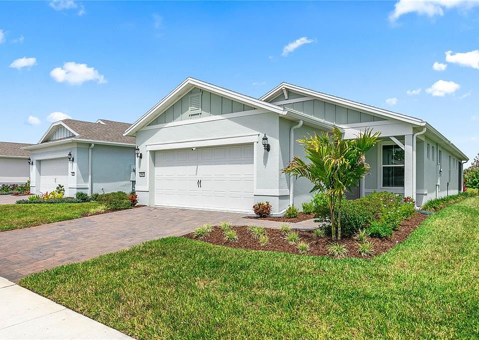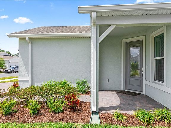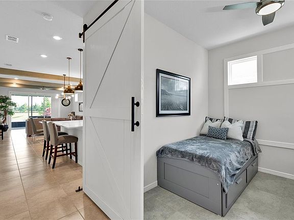 A must see to appreciate. Del Webb Sunbridge is an active adult 55+, guard gated community quietly tucked away in St. Cloud bordering Lake Nona. Its resort-style amenities and low-maintenance lifestyle makes each day beautiful. This 2023 Contour is situated on a panoramic lot offering the pond, palm trees & birds as its scenic sunrise backdrop. A home can be upgraded but its location can not be changed. So why buy some other Contour with its isolated rear outdoor space that may back up to a neighbor's fence when you can buy this home instead with its wide magnificent water view. The floor plan offers 2 bedrooms, 2 full bathrooms, a bonus room/flex space with barn door (currently used as a 3rd bedroom/study), a dining room, a gourmet eat-in kitchen with quartz countertops & gas cooking, a living room upgraded with accent wall, big ceiling beams & 3-panel sliding glass pocket doors that opens out to its privately screened covered lanai which overlooks a scenic water view. There are tiled floors throughout the main areas & wood-look tiles in the bedrooms - no carpets! There is an interior laundry room with cabinets for storage. The 2-car garage is greeted by a sealed oversized paver driveway. Its rear-screened porch pavers are also sealed. The beautiful view of the pond & Florida provides all the sunshine you need. Del Webb Sunbridge is a golf-cart friendly, natural gas community that offers amazing amenities for homeowners, such as lawn service, on-site restaurant, a fire pit area, cabana with outdoor kitchen/grill and pool table, tennis & pickleball courts and more! Additionally, the community sits across Spilt Oak Forest, offering 2000 acres of raw nature. Schedule a showing & come experience the relaxing lifestyle of this home & community.