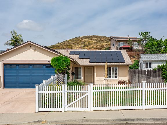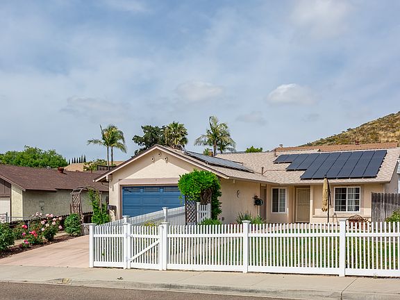 Love coming home to your very own space in Carriage hills! This delightful 4 brdrm, 2 bth home offers ample space for new or growing families. Find quietness in your master suite & unwind in your master bath w/ jacuzzi tub. Newer dual pane windows, slider doors & bonus sunroom. Newer roof w/16yr warranty. New rain gutters, freshly paved driveway & sidewalk. SS appliances & ceiling fans. Equipped w/ solar panels. Quiet neighborho and close to restaurant & shopping. In Rancho San Diego school district.