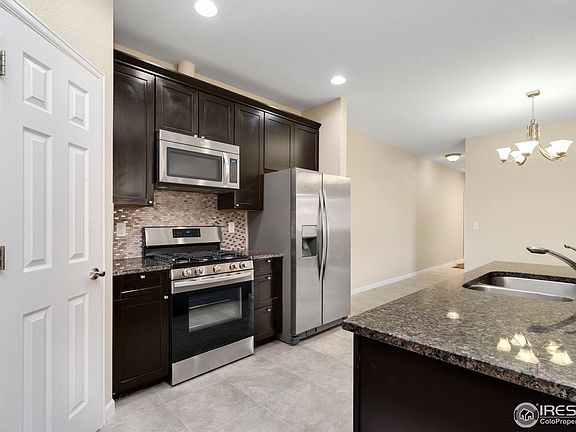 Open and Spacious 4 bedrooms and 3 baths duplex ranch home with modern upgrades. Open layout concept with 9ft ceilings and all granite slab countertops. Contemporary kitchen featuring 42" cabinets with upper trim, all stainless steel appliances, gas range, pantry closet and eat-in island. Separate master suite. Finished basement with bedroom, living area, and bathroom. Oversized 2 car garage. Across from open space and trails to enjoy the Colorado outdoors.