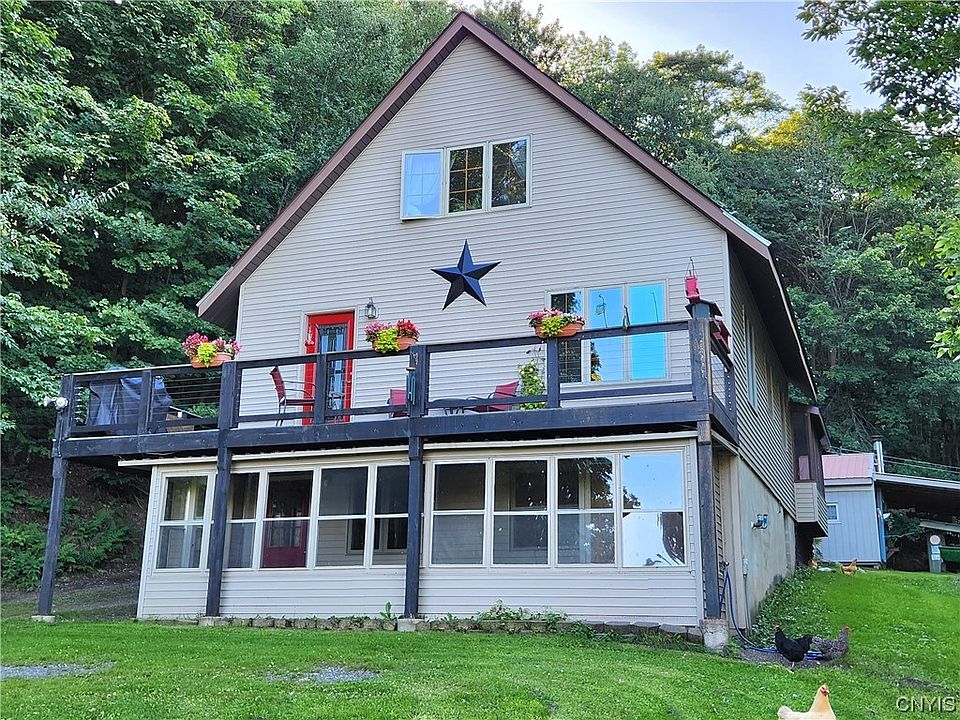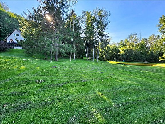What a fantastic home awaits you. Nestled amongst the trees, this private and rural location offers peaceful living at its best, with full sunrise views from your living dining room or deck. This maintained home features hardwood floors on the main floor with a wonderful open layout....great place for friends and family to enjoy as well as finished lower room with a woodstove and walks out to an enclosed porch and yard. Another great feature is the upper bath that accommodates the 2 roomy bedrooms and surely enjoy the large lower bedroom closet on the main floor. All this and 5 acres with a raised bed fenced garden and an independent watering system. Need work space, you'll surely love this 2-car garage with its fantastic shop waiting for your next project. And if this isn't enough, it is only minutes to trials, skiing, golf, SUNY, Cornell, wineries, Cortland and Ithaca....only minutes from town, yet so quiet and private. Call today to view this home.