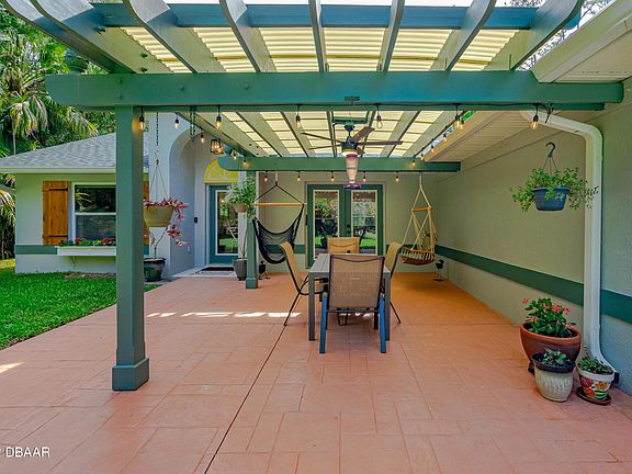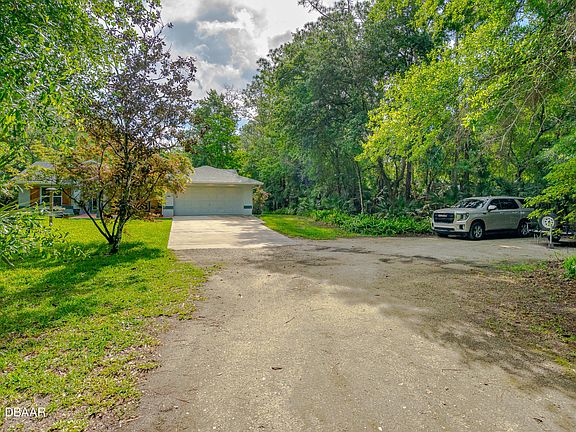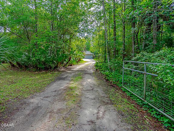 Find peace in country living with this secluded home set on 2.31 acres with easy access to all that Port Orange has to offer. This immaculate home with numerous updates, features a 3-bedroom/2-bathroom/2-car garage, split plan with an updated primary bath and new closet storage sytem. A spacious kitchen with stainless appliances, propane range, cherry cabinet doors, granite countertops and a reverse osmosis water filtration system. New built-in pantry off the dining area with a decorative barn door and eye-catching Pine wood tongue and groove vaulted ceiling in the dining, kitchen and great room. A Wi-Fi ceiling fan in the great room, Nest thermostat and Ring doorbell. Outside includes a three-stall pole building, three raised garden beds, a new shed and fencing with easy lock gates. Some important updates for this home include a new roof in 2019; exterior paint, new shed, custom closet in primary bedroom and kitchen pantry in 2020; inside there was replacement of bathroom vanities, all plumbing (fixtures and toilets), water filtration, outside gutters, irrigation controller with addition of two sprinklers and garden soaker hoses, water filtration replaced, hot water heater in 2021. Fenced garden featuring raised beds, irrigation and Travertine stepping stones were added in 2022. Transferable Termite Bond with fee. All information deemed reliable but cannot be guaranteed.