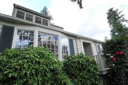 Quiet dead end street of lovely homes. Situated above the street with territorial views, this 1939 Cape Cod is 1 mile from down town Portland, and a short walk to coffee at Stroheckers, the bus and Ainsworth Grade School, and OHSU. This special home combines charming elegance with a truly unique setting, your own private retreat in the heart of the City. Large formal living and dining rooms are served by a big country kitchen with cozy breakfast nook. Home has hardwood floors throughout. The home sits on ¼+ acre of lush mature landscaping providing privacy and tranquility. From your private slate patio surrounded by old growth firs and rhododendrons, watch a creek tumble beneath an arched bridge and fall musically into a pond at the edge of the patio. Paths wind thru the woods to a garden house (or child’s play house, artist’s studio, or ?) with running water and stained glass window. This home comes with three bedrooms and a potential fourth, 2 baths plus a lavatory in the basement. The upstairs bath comes equipped with steam room perfect for those rainy Oregon days. Upstairs has lots of space flexibility for your creativity--family room/bedroom and library/office aerie. Loads of storage. Basement is unfinished but comes with wine cupboard, and large work shop area. Single car garage, gas heat, air conditioning, new roof and well loved and maintained home. COURTESY TO BROKERS