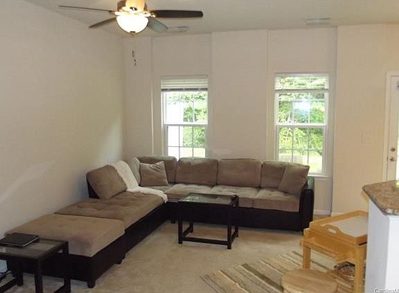 Less than 2 years old! Bright Open Lower Level with Private yard that backs up to Natural Wooded area. Kitchen with work Island, Granite and 42" cabinets. Seller Paid $7100 for New Stove,Frig & Micro.Gated Community with Great Amenities. Pool,Workout Rm,Putting Green,Club House with Pool Table and Kitchen. This unit has an Extra wide Driveway and Patio. Great Location easy walk to Shopping and Restaurants.Quick access to,485 & 77 and Uptown.Most Furniture can remain.Water Included with HOA