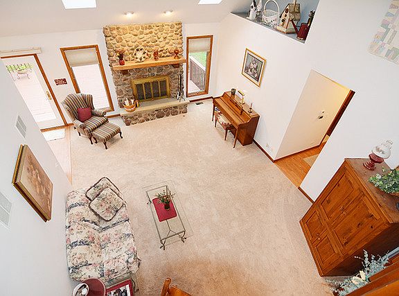Situated on a serene 1+ acre lot with mature trees! Vaulted ceilings/lots of windows/skylights/great natural light. Foyer with custom staircase opens onto living Rm w/Beautiful Stone FP. Kitchen has tons of counterspace/breakfast bar/breakfast Rm and many NEW SS appliances! Formal Dining. Split Bedroom Plan -two on each floor. Spa-like bath in Master - Nicely Fin bsmt w/3rd bath,wet bar & Fam Rm - oversized garage, Gazebo