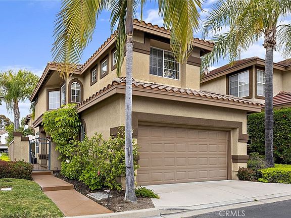 Impeccably maintained and beautifully upgraded, this extra-bright and delightfully open Sunrise home in Laguna Niguel offers a must-have-it turnkey opportunity that won’t last long. A sought-after corner location of about 2,079 square feet is located near a playground and embraces the two-level residence with a gated side entrance, and a custom backyard with raised planters, mature palm trees and handsome colored concrete. Large picture windows invite ample natural light into the first floor, where a living room with fireplace and surround sound, and a dining room with outdoor access, flow directly to a stylish kitchen. Granite countertops and a full custom tile backsplash complement the kitchen’s white cabinetry with soft-close doors and drawers, a breakfast bar, spacious pantry and stainless-steel appliances. Approximately 1,246 square feet, the home offers an upscale powder room on the first floor, and two primary bedrooms with ensuite baths upstairs. The main primary suite displays a vaulted ceiling, upgraded bath with custom tile shower surround, and a scenic peek at the mountains. Further enhancements include a second-floor laundry room, an attached two-car garage with shelving, slate tile and plush carpet. Sunrise is located in the heart of Laguna Niguel close to shopping and dining along Crown Valley Parkway, the beaches of Dana Point and South Laguna, and Laguna Niguel Regional Park.