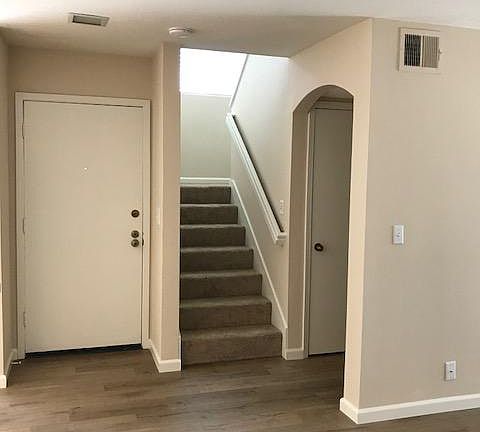 Beautiful, large 1210 sq ft, recently remodeled townhome in lovely, gated community. 2 large bedrooms upstairs with large closets (one is roomy walk-in), each bedroom has full bath. Third bath is downstairs. Washer/dryer included. All bathrooms have beautiful tile floors, quartz counter tops, new lighting. Downstairs has beautiful hard surface flooring. Kitchen completely refinished. White cabinets, quartz counter tops, new lighting, stainless steel stove, microwave, dishwasher. White window blinds throughout. Fireplace, air conditioning, 2 patios, attractive community with pool. Roomy one-car detached garage plus additional community parking. Near 73 toll road, Home Depot, Sprouts and Target Store. No pets. Water and trash disposal included in rent. Non smoking home. Also, the community does not allow smoking in common area.