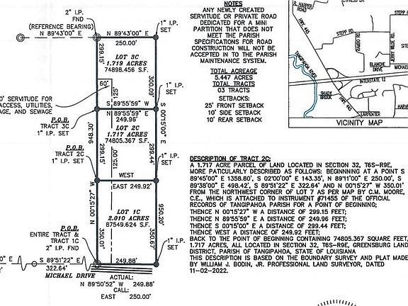 Beautiful 2 acre tract of land on the north side of I-12 ready for a new home, duplex or investment! Located in Flood Zone X. Electric, telco and possibly city water at the street! Lot 1C is at the end of the road on the left. Reach out for more details! Owner/Agent