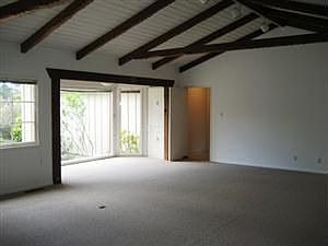 Available immediately is this classic ranch style, three-bedroom, two and a half-bath single-family home located at 24458 San Mateo in Carmel. The rent is discounted to $2800 for maintaining the property and paying the rent on time. This is a non-smoking property; No pet property. You can enter this 2100 square foot home by way of the two car garage. Up a flight of stairs you enter into the kitchen dining room combo. The kitchen features an electric cook- top, built-in oven, refrigerator, dishwasher, pantry and disposal. Just off the kitchen are the half bath and laundry room with washer, electric dryer hook-ups and utility sink. The family room has new carpet, an area that can accommodate a dining table, oversized windows, fireplace and open beam ceilings with beautiful woodwork. There are three bedrooms and two baths down a hallway just off the living room. The guest bathroom has a separate stall shower and tub. The master bedroom and bath are at the end of the hall and the bathroom has a shower over tub. The floor coverings are new carpet through out the living room and bedrooms, vinyl in the bathrooms and kitchen. There is one fireplace in the living room and the rest of the home is heated by natural gas central forced air. The back yard is fenced, and there is a brick patio off the kitchen great for a barbecue.