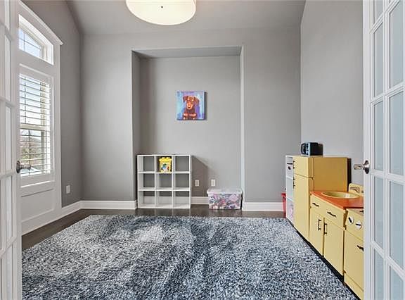 Better than new 2-story w/5 bedrooms (1-in basement) + office/flex room, 4 1/2 baths and fully finished daylight basement. Suspended garage-so that basement area is wired and finished for a theater room, including staged flooring for recliner seating, floor plug ins, wall sconces on dimmers and projection shelving ready for the complete system and barn door. Lower level also offers Rec room, 2nd kitchen, 5th guest bedroom and 4th full bath. Guest bedroom has a built in Murphy bed custom built cabinet. Enormous pantry in the DREAM kitchen. Fantastic kitchen island. Full mudroom with 5 individual cubbies and mail drop desk/charging station and oversized coat closet. Main level dry bar. Main level office has frosted French doors and plantation shutters. Full stone fireplace with built ins. Sonos ceiling stereo system. Fully covered deck with fan. Completely fenced yard that backs to walking trail/common area. Master suite has soaker tub and custom built dresser in walk-in closet plus Double Headed walk-in shower. Rooms are wired with Cat6 wiring, perfect for remote work&school since all rooms are hard wired with gigabit Ethernet! Tankless water heater. Huge unfinished basement storage. Laundry and utilities doors are heavy sound reducing doors. Underground sprinkler system. No pole 3-car garage with quiet garage opener. Suspending the garage gave the two upstairs bedrooms extra square footage. Rainbow play system in back yard. Cul-de-sac lot in The Crossings (walking distance to Cedar Creek Elementary). ONE OF A KIND!!! Don't miss it!!