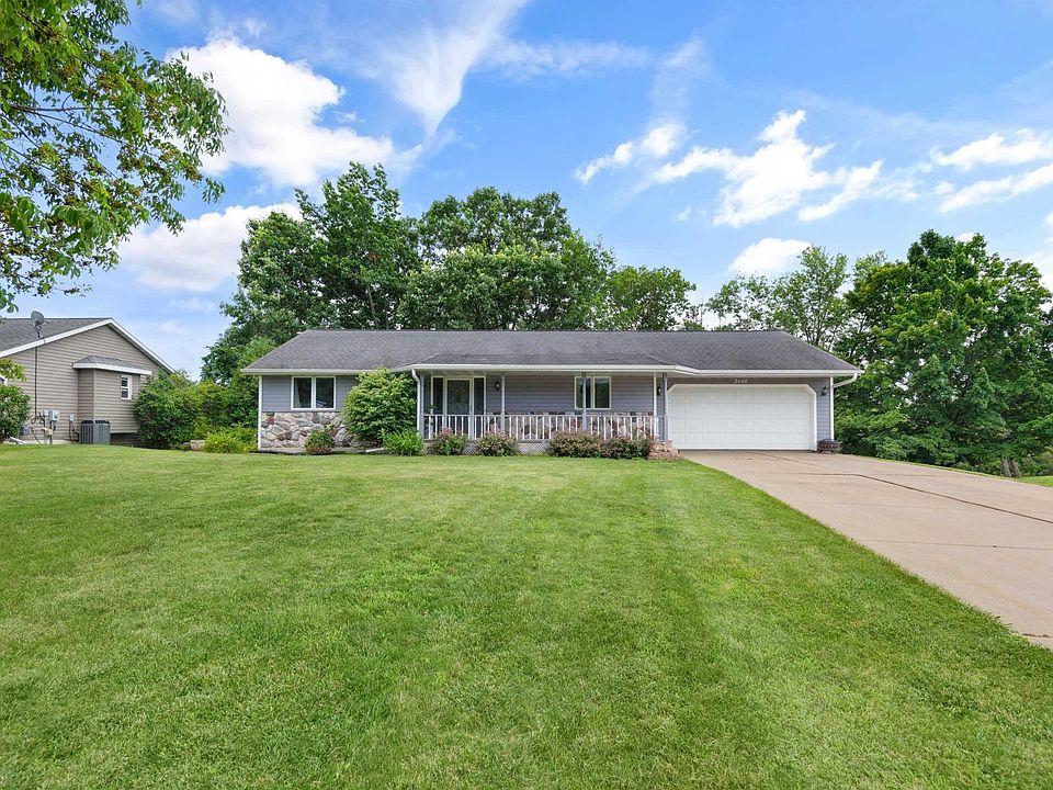 Bellevue custom ranch w/walk-out lower level leading to a park like backyard. 1.39 acres with wildflowers and tranquility at your leisure. Living room offers wood burning fireplace, 2 large picture windows and patio door leading to a nice sized deck. Kitchen has oak panel cabinetry with skylights. 2 bedrooms on the main floor. Master is currently being used as a playroom with full bath. Lower Level has a gas log fireplace, 3rd bedroom with walk-in closet and walk-out entry to your paver patio. Backyard you will also find an additional storage shed and small creek on south end of property line. Schedule a showing today.