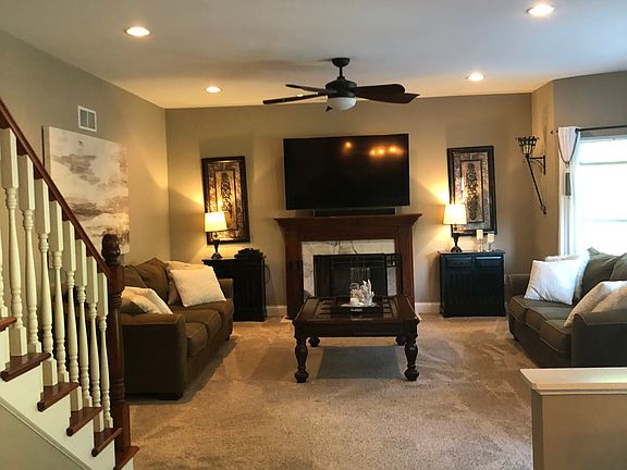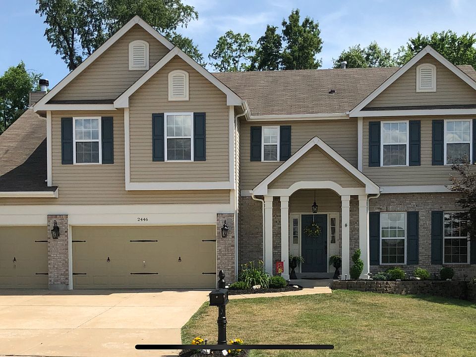 This IMPRESSIVE 4 bed/2.5 bath brick-front 2-story offers abundant space & character! Hardwood flooring greets you in the foyer & the space flows naturally through the formal living & dining rooms. 9ft main floor ceilings. Inviting main floor family room with sunny bay window & marble surrounded fireplace. Everyone will adore the gorgeous gourmet kitchen & breakfast room with custom 42in cabinetry, center island, breakfast bar, walk-in pantry, stainless appliances, bay window & atrium walk-out to the patio & level yard. Ultra-convenient 2nd floor laundry room. Huge 2nd floor great room/loft with soaring cathedral ceiling & a wall of built-in shelves. The spacious master suite includes another cathedral ceiling + walk-in closet & private full bath with double sinks, oval corner tub & separate shower. Easily manage the entire homes climate with the custom zoned HVAC & UV window tinting. Giant 3-car attached garage makes coming home a breeze. Set an Appt Today! Over $50,00 in updates!