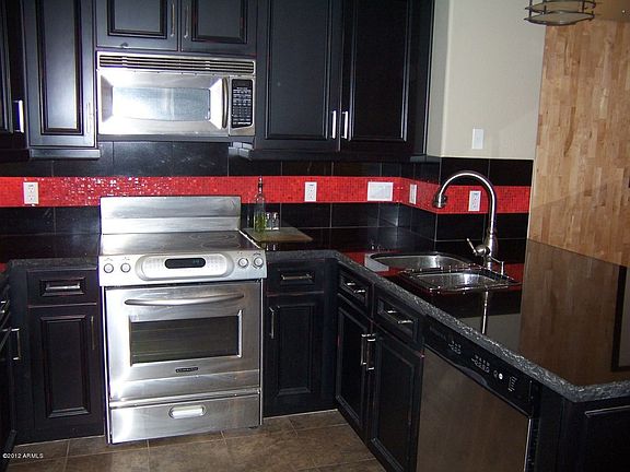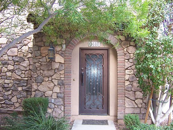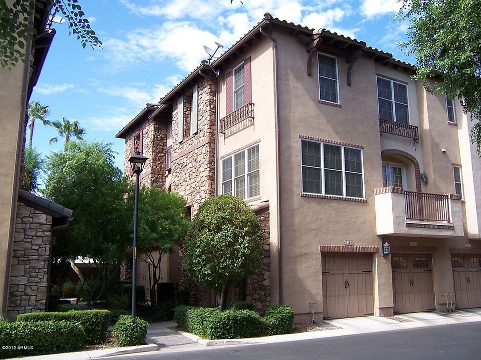 Highly upgraded Biltmore Jewel Townhome within walking distance to Fashion Square and the Esplanade. Located in a quiet, gated 80-unit community close to St. Thomas Catholic Church and desirable public schools. Gorgeous iron & glass front security door. Hardwood flooring throughout except tile in the kitchen & baths. Hardwood stairs with wrought-iron & wood bannister and stair runner. Kitchen has granite counter tops, staggered cabinets with crown molding and stainless steel appliances; Fridge, Washer & Dryer included! Corner unit with contemporary lay-out & design elements, with views from the balcony into the grassy, tree-lined walkway. Low E windows, R/O water softener, and insulated garage door. Custom interior paint and custom master closet.
