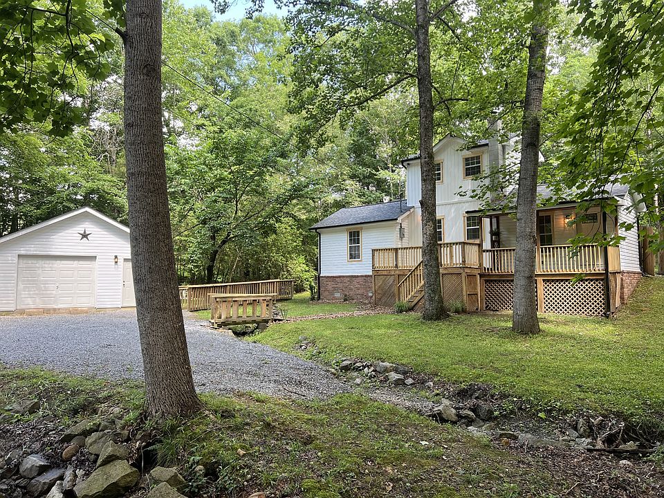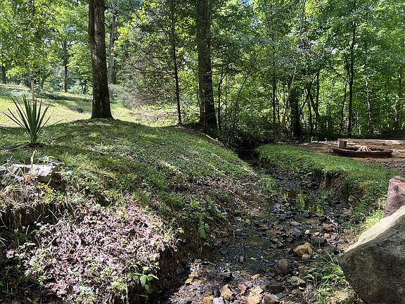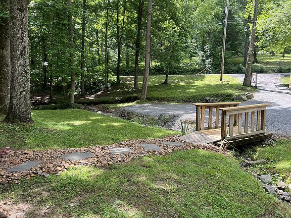 Firepit & little babbling creek! It's your personal Tennessee Retreat! Gatlinburg vibes without the bears and steep terrain ;) Cozy Living Room with custom-handcrafted wood stove * BRAND NEW Kitchen with granite countertops, Hickory cabinets, SS appliances * NEW River Rock & Tile shower in completely updated Bathroom * NEW Roof on Home & 20x24 Garage * NEW Gutters, exterior lights, and doors (int.&ext.) * NEW tankless water heater * NEW 1/2" bamboo flooring (gorgeous!) * Loft Bedroom w/ private balcony * Guest Room or Office or Nursery w/ arched entry * NEW siding and decking * Stone pathway * Fresh landscaping * Cute little bridge over the creek * So much new, so much detail & uniqueness, so much to see!!