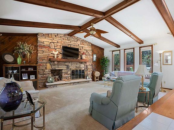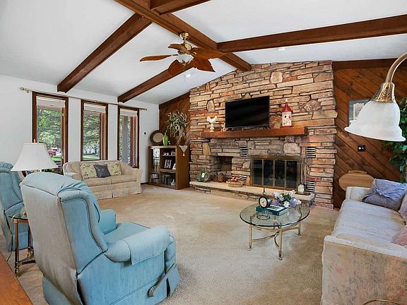 Beautifully maintained Stone/Cedar trimmed Ranch! Centrally located in desirable Ashwaubenon neighborhood! Open concept living space features Sun filled living rm w/vaulted, beamed ceiling & stone faced gas log fireplace. Inviting kitchen/dinette with an abundance of custom cabinets, newer appliances, wood/ceramic floor & built-in desk area. Back entry with ample closet storage, half bath & FF Laundry! Master Suite w/full private bath & glass door access to deck/hot tub gazebo! Lower level has nice high ceilings & stone faced wood-burning FP! Lower level is sheet-rocked ready to finish!