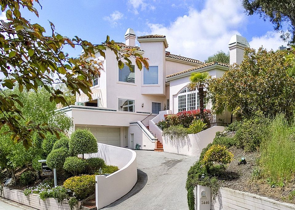 Emerald Hills. Enjoy the scenery and perfect privacy in a country setting but still convenient to all the benefits of mid-Peninsula living. Grand picture windows, Nana folding glass wall, great gourmet kitchen with recycled glass Vetrazzo countertop and induction cooktop, solar panels. Private backyard with beautiful hill view, hot tub, sunny wood deck and pergola.