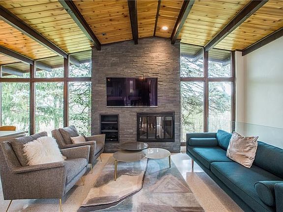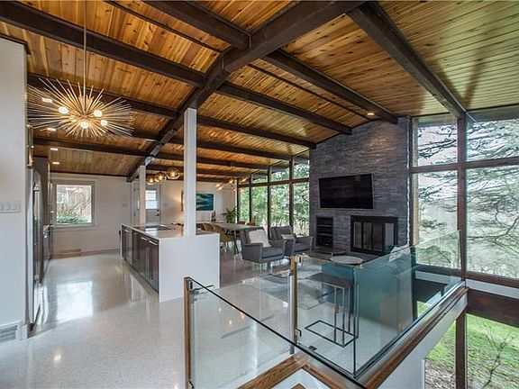 Wow! This Mid-Century modern home has been totally remodeled and updated to create a classic contemporary home with all the important modern updates. Upon entering the home you are immediately struck by the beauty of a back wall of glass windows which allow plenty of natural light as well as an awesome view of the beautiful back yard. The modern kitchen, complete with white quartz counter tops, soft close drawers, a stainless steel under mount apron sink and plenty of storage is perfect for entertaining. The cozy living room has plenty of space for lounging and enjoying the stone stacked fireplace for those chilly nights. There are three nicely sized bedrooms on the main level, with beautifully refinished hardwood flooring. The full bathrooms have glass enclosures, extra-large subway tile and floating vanities with recessed LED lighting. The lower level is complete with a large game room beautiful gas fireplace, a gorgeous full bath and a 4th bedroom/office/exercise room.