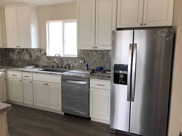 Single Family home has been completely remodeled. All new appliances (Refrigerator, Dishwasher, Microwave, Gas Range, Washer / Gas Dryer, Tankless water heater, Central heater / AC, Ceiling fans, LED can lighting). Open floor plan, new cabinets with self closing doors and drawers. All new plumbing and electrical. Private yard with deck. Single car garage which can be used as a room because it has epoxy floors and fully finished. Decked backyard, gated with artificial turf. This is a quite residential area with very little car traffic. If interested PLEASE call and we can arrange a showing. Do NOT auto reply please. This is a Single Family Home Tenant pays utilities