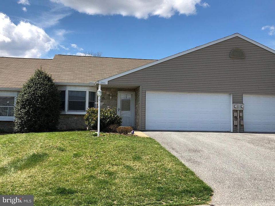 Looking for convenient 1-floor living? Enjoy life in this 2BR, 2BA ranch-style condo in White Oak Manor. Property is ready for immediate occupancy! Light and bright with hardwood entry foyer; dinin area; kitchen with breakfast bar and appliances; living room with patio access; master suite with private full bath; finished 2-car garage with pull-down attic storage. Patio is private and overlooks trees. Super convenient location! Minutes to I83 and Rt30! AGENTS - Read Agent Remarks!