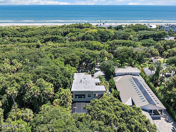 HUGE $355K price reduction at ''The Tree House'' - where fun, freedom, and wellness come together in a one-of-a-kind coastal sanctuary. Designed by James Dupree and nestled on a rare 1.04-acre estate lot (73' x 600') next to the 447-acre Hanna Park, this home is made for living life your wayrelaxed and surrounded by nature. Just across the street from the ocean and a bike ride to Town Center, you're close to everything, yet tucked away in your own private world. The property features 600 feet of cleared, irrigated space for play, gardening, yoga, or weekend games, plus a bamboo privacy wall and oversized parking apron for guests. Inside, large picture windows flood the home with natural light, creating a bright, treehouse-like feel. Enjoy a luxury screened pool and spa, red light sauna, upgraded kitchen, and a custom entertainment spaceall thoughtfully designed with wellness and connection in mind. Public Beach access is less than one mile away. This is not just a homeit's a vibe.