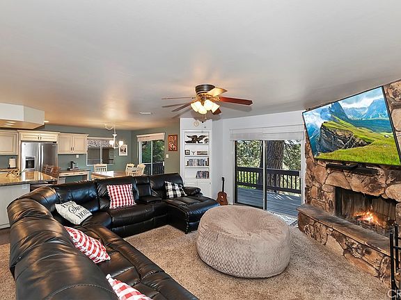 Surrounded by mature trees with distant peek-a-boo views of mountains and city lights, this home has so much to boast about. The large driveway has room for several cars and is located off a paved and maintained road. On the main level, there is an extensive wrap around deck with plenty of space to relax and enjoy the fresh mountain air. Entering the front door, you will step first into the mudroom before entering into the living room. Extremely helpful in the winter months to kick off your snowshoes. The main living space is open and comfortable, featuring a grand rock fireplace, cozy seating, and beautiful views out the slider. The kitchen offers granite countertops, stainless steel appliances, plenty of storage, and a dining area with another slider to enjoy the large deck. The master bedroom is on the main floor, down the hall are 2 spacious bedrooms, and a full-size bath. The hall closet also has hookups for laundry. Downstairs, you will find the main laundry room with attached storage space. This bottom level presents the 4th bedroom, full bathroom, and an inviting family room with a wood burning stove. Considering this level has its own entrance and large front deck, you could make this floor a 2nd living quarter, entirely, should you want/need to. Remember that there are laundry hookups on both levels! The 4th bedroom has a large walk in closet, and don't miss the 2nd closet in that closet! This house has TONS of room. In the backyard is a tree house, fenced in area, and several fruit trees including apple, pear and cherries. This home can come furnished and also includes the snowblower. Ready for you to enjoy!
