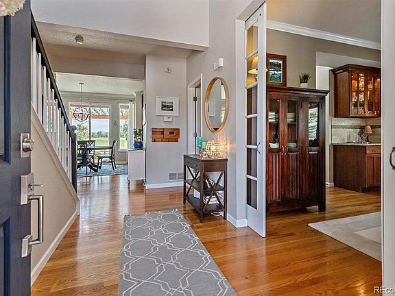 ~Welcome to Vista Ridge! This beautiful Two Story home is nestled in a resort-style community, backing to the Golf Course. The sun brightened floor plan provides five large bedrooms and optional mother-in-law suite w/second laundry & wet bar. Main level features - hardwoods throughout, gourmet kitchen w/granite, SS appliances, double ovens, walk-in pantry & large island, formal dining, family room, and living room. The upper level includes - 4 bedrooms, finished laundry w/ample storage, master & sitting area w/ captivating mtn views, spa-like bath incl. split vanities, and soaking tub. The finished basement boasts plenty of room for all your additional needs with a wet bar, rec room, potential office, bedroom space, and a full bath. Wonderfully updated with unforgettable views of the Colorado sunset in any season offers leisurely living at its finest. You will be surprised by the exquisite indoor/outdoor living space perfect for entertaining. Enjoy relaxing after work in the lush, mature landscaping w/private patio, second sun patio w/mtn views, water feature, fire pit, and built-in BBQ. The family will love the location steps away from CO National Golf Club, Masters Restaurant, Community Center, parks, fitness center, & community pool. Easy access to I-25, Boulder, & Interlocken, Denver, and DIA. Don't forget Erie's impressive 4th of July fireworks, northern Colorado's largest balloon fiesta, and Colorado National golf tournaments home to the CU Buffs golf team.