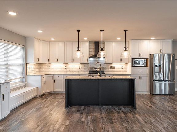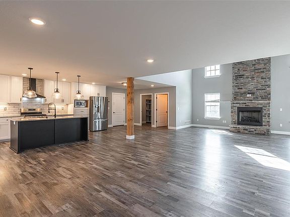Introducing this exquisite farmhouse nestled on over 3.5 acres offers an idyllic retreat from the everyday hustle & bustle. Step onto the inviting wrap-around porch & feel the allure of country living at its finest. Boasting 5 bedrooms & 3.5 bathrooms, this spacious home is designed for both comfort & luxury. Entertain guests in style within the expansive custom kitchen, featuring granite countertops, custom cabinets & a generous center island. The grandeur continues with a dramatic 2-story living room adorned by a magnificent 21-foot stone fireplace, creating an inviting ambiance for gatherings. Retreat to the master suite, complete with a luxurious soaking tub, separate shower & a sprawling walk-in closet. Experience the ultimate in indoor-outdoor living with a finished basement that seamlessly connects to the lush backyard oasis, offering endless possibilities for recreation. Plus, practical amenities such as a John Deere room add convenience & functionality to this dream property.