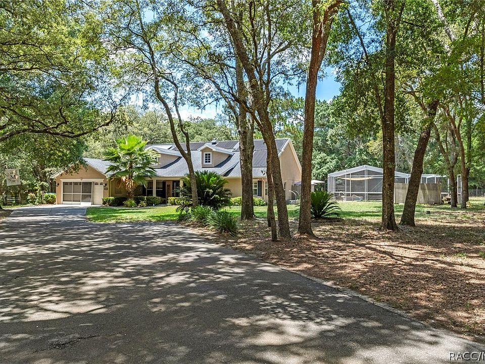 Welcome to your Florida horse-property paradise! Nestled just a mile from the Withlacoochee State Forest horse trails, this exquisite estate of nearly 5 sprawling, tree-shaded acres offers the epitome of gracious living. Spread across two tracts of 2.40 acres each, fenced & cross-fenced. Open your entry gate with push-button access and drive down your private lane into a world of luxury & tranquility as you enter this spacious home boasting 4 beautiful bedrooms and 3 immaculate bathrooms. This home is calling all horse enthusiasts! You AND your horses will feel right at home in the airy barn: 3 stalls and ceiling fans for optimal comfort. The generator can power the ENTIRE property and the 250 gal propane tank is owned not leased. Tack room A/C provides climate-control for your leather goods & riding essentials. Pastures & fencing are in great condition. Surrounded by the majestic canopy of ancient live oak trees, the barn offers a tranquil oasis with abundant shade and cool breezes. Ample room for relaxation and entertainment, this residence is the perfect blend of comfort and elegance. After riding your horses, dive into cool water of the caged AND HEATED POOL, perfect for year-round enjoyment. Whether you're savoring your morning coffee on the porch, taking that refreshing dip in the pool, or exploring the expansive grounds, every moment spent on this picturesque property is sure to be unforgettable. This oasis provides the ultimate in relaxation and recreation. And did we mention the hot tub?