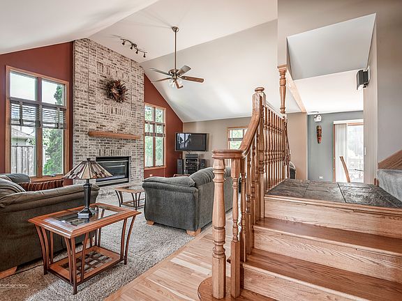 Gorgeous Two Story Custom Built Home in Channahon's Indian Trails North Subdivision! 4 Bedrooms, 2.5 Baths, 3 Car Tandem Garage with Rear Garage Door and Finished Basement. Breathtaking 2 Story Family Room with Electric Fireplace with Two Story Brick Hearth. Beautiful and Durable Hickory Floors in Entry, Formal Dining Room and Kitchen. Ample Cabinetry, Granite Counters, Backsplash and Island in Large Eat-in Kitchen. Turned-out Staircase leads you to the 4 Bedrooms on the 2nd Floor. 4th Bedroom has sliding Barn Door, 3rd Bedroom has a Vaulted Ceiling, Hall bath has New Granite Counter and Waterfall faucet, huge Master Suite has Cathedral Ceiling in Bedroom and Master Bath. Ensuite has His-and-hers Vanities with Granite Counters, Soaker Tub, Enormous Walk-In Closet, New Vinyl Plank Flooring and Separate Shower with Tile Surround. Almost Half Acre Lot, Tree-lined for Privacy! Huge Deck Other"News": Roof only 3 Years Old, Deck stained with 10 Year Warranty, Water Heater (2018)