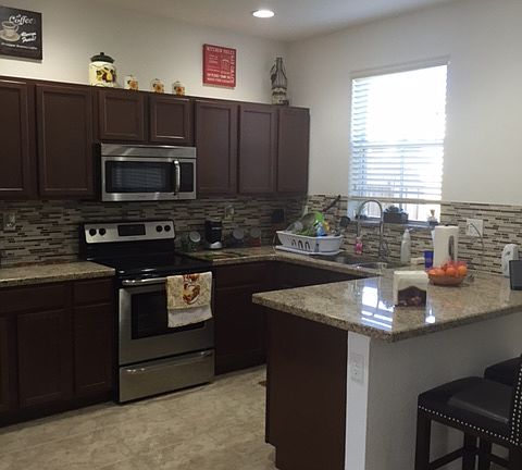 Spacious 4/3 with bedroom and full bath on entry level. Granite counters, tile floors, laminate flooring in bedrooms and second floor. Laundry room upstairs. Fenced yard .