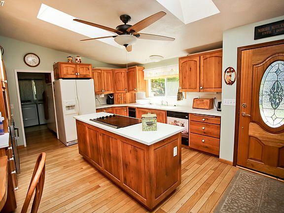 The place with everything! This Large home on 5 acres features: 5 bedrooms with master on the main, Oregon oak hardwood floors, and great floorplan space. Outside the home you'll enjoy the expansive wrap around deck, oversized garage, 36x48 shop with 220, 46x20 RV garage, and pole barn! Property is nice, peaceful & private, and includes apple & cherry trees. Fridge & freezer stay with home.