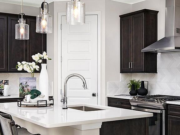 Modern soft-close cabinetsImpressive loft areaElegant quartz countertopsPlush carpetOpen and airy ambianceStylish tile flooringChic cabinet hardware