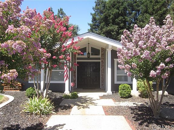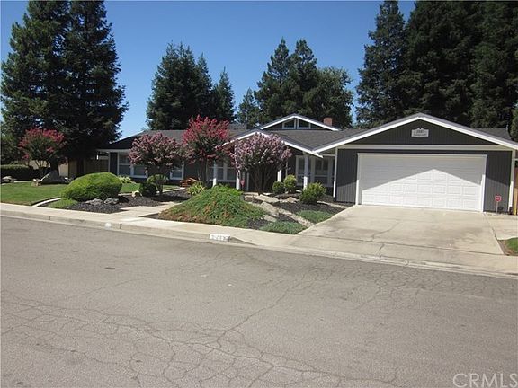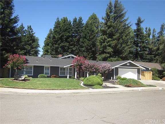 Located on a quiet cul-de-sac just north of Bear Creek and west of Whitegate Estates, sits this classic ranch style home with tasteful updates that create a warm blend of older functionality and newer amenities. The double door entry leads to a large great room with 2 story high cathedral ceiling, exposed beam, upper windows allowing natural lighting, upgraded carpeting, and a brick fireplace with gas insert and a sunken conversation pit. The kitchen has two convection ovens, beautiful cabinetry with melamine rollouts behind every door, upgraded appliances, recessed lighting, brick accents, and a large island/breakfast bar with seating for four. Just completed in 2017 is a 30 year composition roof, fresh exterior painting, and plantation shutters throughout the home. Flooring consists of distressed hardwood throughout all common areas, upgraded carpeting in the bedrooms, and tile floors in both bathrooms and laundry room. Each bathroom has been remodeled and each has double sinks. The guest bath has a beautiful granite top bathtub. The master bathroom has tons of built-in cabinetry, plus a walk-in closet. The office has lots of cabinetry and bookshelves and double French doors if a little extra quiet is needed. A large chunk of this 16000+ sq. ft. lot is devoted to the Sequoia tree-lined backyard with a beautiful pool and spa, a nearly new brick fire pit on a brick basket weave patio, two storage sheds, plus room for a boat or RV on the east side of the lot.