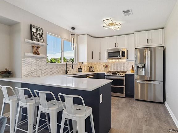 Location, location, location. This gorgeous Westridge 2 story backs to a large greenbelt with endless trail opportunities. A short stroll to Redstone Park to the west & Westridge rec center to the east. Fully remodeled kitchen w/ new cabs, backsplash, counters & stainless appliances. Entire main floor w/ new LVT flooring. Built-in pantry & storage makes the space very functional. Kitchen open to dining area & family room, perfect for entertaining. Primary bedroom offers a full ensuite bath w/ double vanity, walk-in closet w/ built in closet system & gorgeous views from the primary window. Upstairs includes 2 additional bedrooms & a full hall bath. The finished basement offers a great room or game room, a perfect home office or kids play area & a 3/4 bathroom. Brand new (2022) furnace, air conditioner & hot water heater. Enjoy summer bbqs & watch sunsets on your back deck. 5 minute drive to Town Center, multiple breweries, shops & restaurants. Easy access to C-470.