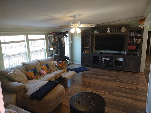 This Four-bedroom, Two bath, double-wide sets on 30 beautiful acres, wood with hiking trails, waterfalls, and plenty of privacy, at the end of the road. Beautiful views, and lots of space for whatever you like to do. Large porch and back deck.