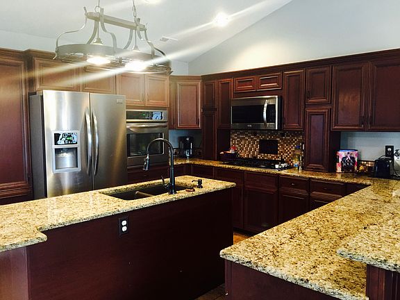 • Interior Features: Counters - Granite, Garage Door Opener, Jetted Tub, Storm Shelter, Walk-in Closet(s), Walk-in Shower, Ceiling Fan(s), Eat-in Bar, Smoke Detector(s), Raised Ceilings, Kitchen Island, Window Coverings - Blinds All, Window Coverings - Curtains All