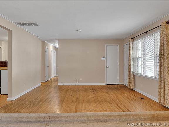 Charming 4 bedroom, 1 bathroom, 1500 sq ft house located in north Tulsa. Inviting living space with tons of natural light and original hardwood floors. Carpeted master bedroom and sunken living space. Large backyard with 2 storage sheds that stay with the property. Could be a great starter home!