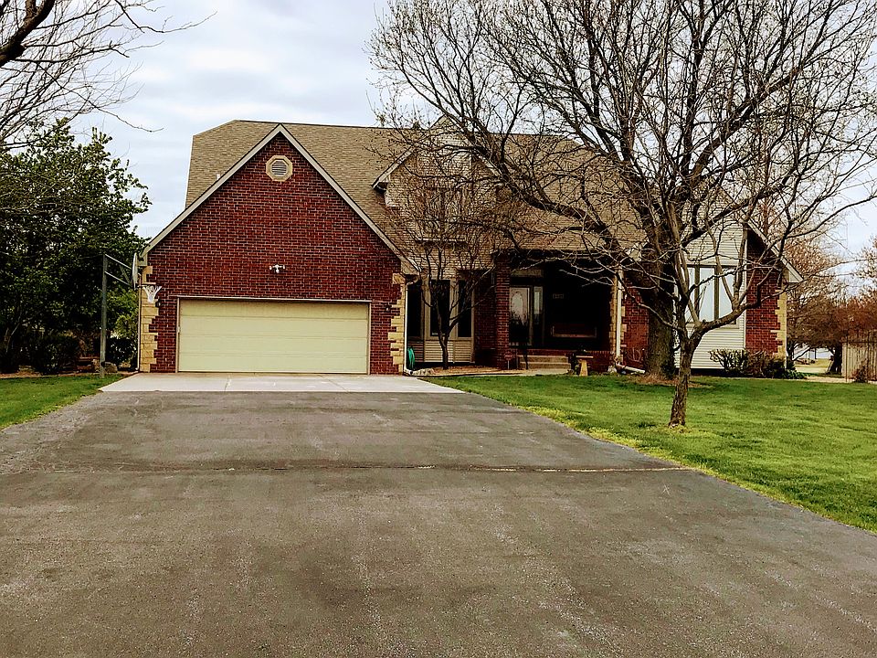 This well built 2 story home is 90% brick and 10% vinyl siding, 6" exterior stud walls for extra insulation along with Pella windows. The main floor is lovely with formal dining, living room with two way fireplace into the hearth room, gourmet kitchen with hearth room, desk, pantry and over sized eating space, island with additional seating with granite tops. Master suite is huge and has adjoining 12x13 den that opens to living room with french doors as well as master bath with tile shower, whirlpool tub, dual sinks and large walk in closet. Main floor flooring is luxury vinyl and looks amazing. Upstairs has a fun 11x13 loft perfect for toys, TV or reading space. 3 generous sized bedrooms (one with window seat), 2 of them with jack and jill access to the bathroom as well as a hall entrance. Don't miss the laundry chute which sends the close into a cabinet in the 8x10 laundry/mud room right off the garage. Walkout basement is great space separated by brick fireplace with wood stove allowing you to have family room and game/craft area. 12x8 wet bar with space for a full size refrigerator. Basement bedroom with view out windows currently used as quilting room and has door to bath. Additional finished room has walk in closet additional lighting would make a great work out, craft or movie room. Upgrades galore on this home including central vacuum, covered deck, covered patio, patio with fire pit all and rear property fire pit on 1.35 acres. Don't forget the extra 16x24 shop with 12 foot door and electricity large enough for another vehicle as well as storage. 3 raised beds with sprinkle hoses ready for this years plantings. Sand play area (exclude play set and trampoline), lots of mature trees. Home is on septic and well. Sellers are original owners and have done an excellent job of maintaining everything. Long drive of concrete and asphalt can accommodate around 8 vehicles. Maize schools. Don't miss this wonderful area where your neighbors are not on top of you however you are close to all the west sides amenities including New Market Square. Some exclusions. Virtual walk through tour gives a nice feel of the property.