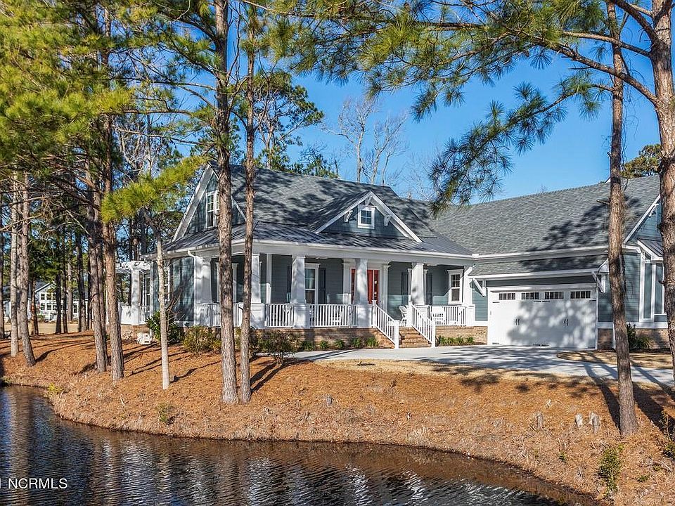 Why build when you can buy this 1 year old beautiful custom built Hagood Home on one of the most desirable lots in St. James. This truly impressive home has pond views from 2 sides of the home and is directly adjacent to the fourth hole of the Cate Nine and across the street from the golf course and pond. These unobstructed views from the large raised front porch and back porch make you feel like Nature's show is just for you. This residence is inspired by the best features from craftsman, farmhouse and cottage influences. The home seamlessly joins the best from each architectural style. The first floor offers a large greatroom for entertaining with 12 ft. sliding glass doors opening into the screened porch, dining area & a country kitchen with 7 seat u-shaped island allowing family and guests to comfortably gather. Appointed with a farmhouse sink with one of many large windows directly above, allows the sun to pour through the open concept living area. The inviting morning room has 6 ft. windows & elegant french doors opening to the screened porch. A large owner's suite, a guest suite bath with excellent closet space, laundry room complete with great storage and 1/2 bath to complete the split floor plan. The second level has a bedroom, full bath and large lounge area that can be used as a media room or spacious home office with a deck overlooking the pond and golf course. The oversized 2 car garage has huge storage area above. Conveniently located, the home is an easy walk to the St. James Marina, Tommy Thompson's and Waterway Park. It is 1 mile to the Grove Gate and then minutes to the beaches on Oak Island. This property offers beauty, privacy and tranquility. An ideal location to relax and enjoy the stunning views. Escape from the ordinary by letting this home become your favorite retreat and be one with nature.