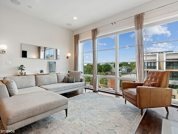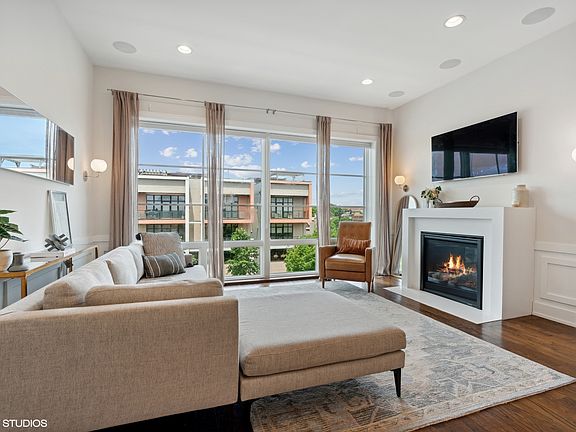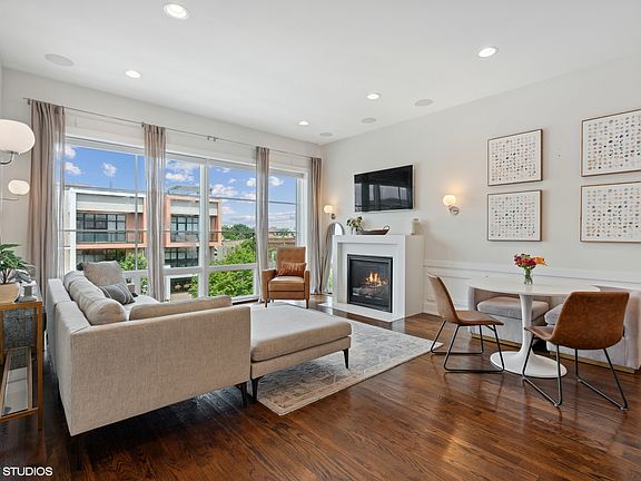 Available now! North Center two bedroom two bathroom duplex style home. With meticulous attention to detail, this property was professionally designed with the highest quality of finishes throughout. Natural light pours through the floor to ceiling windows into a spacious and open living/kitchen condo which boasts custom cabinets, quartz counters, Bosch appliances, wainscotting, and a gas fireplace. **Owner recently refinished hardwood floors throughout the unit to a lighter stain.** Massive primary suite features a walk in closet, spa like bath with dual vanity, and Jacuzzi tub. Private balcony faces south plus expansive shared rooftop garage deck. Garage parking included. Tenant only responsible for electric, gas and internet. Water, trash and parking included in rent.