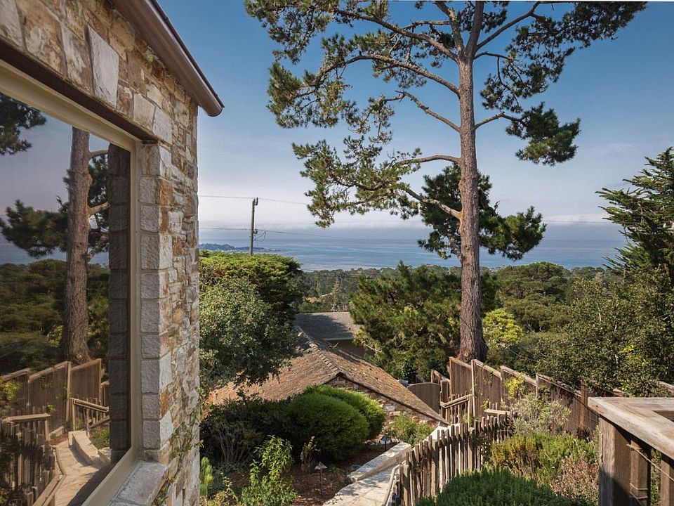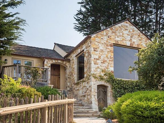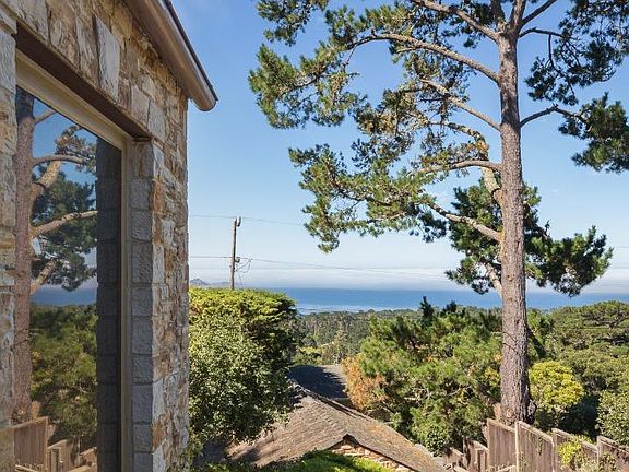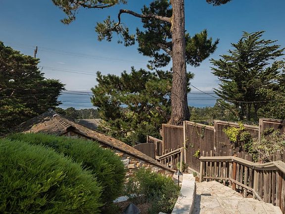 Expansive Ocean views + separate studio.. Sited at the top of the hill, up a winding stone stairway, your home waits for you. Hardwood floors, ocean views and three bedrooms plus an office/crafts room make up the main house. The living room with its vaulted ceiling is the center of the home. The dining room and open kitchen are at one end of the home while the bedrooms and the office are at the other end. There is a small studio at back of the property which has its own bathroom. Double car garage with a freshly sanded and finished floor. Stone stairway lead up the hill to the house. *Studio is included in square footage.