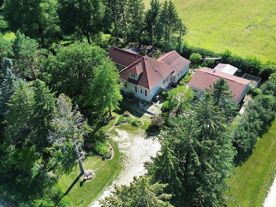 Step inside this beautifully maintained Acreage nestled on a vibrant 1-acre of land. Amazing remodeled kitchen shines with elegant Omega cabinetry, newer appliances, and double pantry cupboards, offering plenty of space for culinary adventures. The main floor offers convenience and charm with yellow pine floors in the living room and main-floor bedroom, where you’ll find a spacious walk-in closet with built-ins for effortless organization. Enjoy cozy moments in the sun-filled sunroom, or curl up with a good book beside the built-in bookcases. A practical main-floor laundry makes everyday tasks a breeze. The home is equipped with a Kinetico water system and softener, plus a K5 drinking water system, ensuring pure, high-quality water throughout. Outside, this property is a true haven for nature lovers and hobbyists alike. The double garage features a7 ft. door and oversized 8-foot door with opener for added versatility, while a storage shed provides ample space for tools and equipment. Pet owners will appreciate the chain link dog kennel, and families can delight in the large school swing set frame, perfect for children’s swings or a spacious porch swing. Gather around the firepit for evenings of s’mores and storytelling under the stars. Gardeners will be thrilled with a small greenhouse wired with 110-amp service, and eco-friendly rainwater collection from the new metal roof channels water to barrels for sustainable watering. Approximately 1/3 acre is planted with colorful perennials, pollinators and native grasses, creating a stunning, low-maintenance landscape. This property blends comfort, thoughtful updates, and endless possibilities both indoors and out. Don’t miss your chance to make it yours!