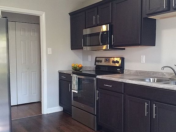 Home was remodeled 6 months ago. New kitchen with stainless steel appliances, bathroom, hardwoods throughout refinished. Laundry is in hallway for easy access. Great yard on quiet street. Extra storage on back of house. No pets. No smokers. Looking for at least a 12 month commitment. Background check is a must.